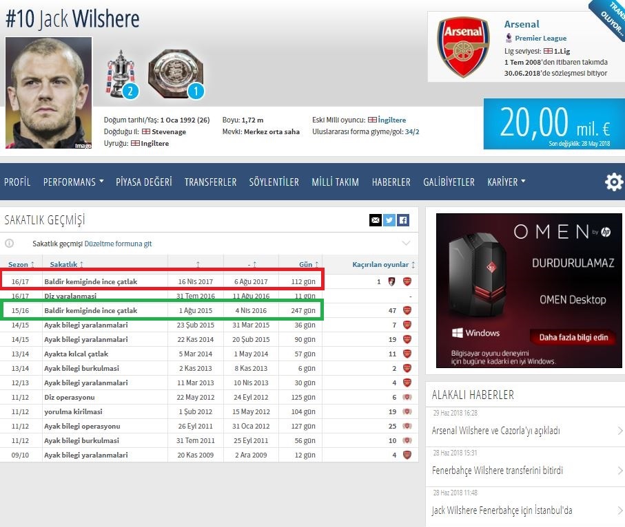 Yetenekli ama bir o kadar da sakat orta saha. Auf dieser Seite wird die Verletzungshistorie sowie die Sperren und Ausfälle angezeigt. Bu maç raporu Arsenal ve Huddersfield Town arasında 29 Kas 2017 tarihinde Premier League müsabakasına ait.